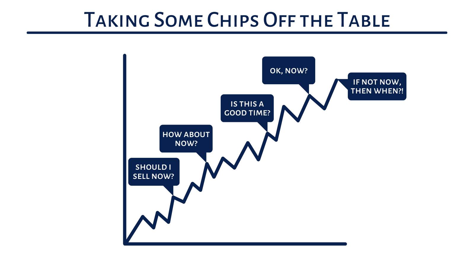 With the market still hovering near all-time highs, economic data coming into question, and many pundits once again forecasting tough times ahead, a familiar question begins to arise… “Should we take some chips off the table?” It’s an understandable question, given that the stock market has been on an incredible run for much longer than anyone anticipated. More specifically, the market has delivered returns of +26%, +25%, and +18% over the last three years (and averaged more than 15% per year for the last decade). And last year, international and emerging markets joined the party in a big way, returning +31% and +34%, respectively. The pleasant result of these returns is that our portfolio balances—for many of us, if not most of us—are higher than ever before. Obviously, that’s a great thing. But when that happens, we have an innate instinct to protect what we’ve accumulated. That response is as natural as it is ironic. It’s ironic because our portfolios have grown to where they are primarily because we stuck with equities while many investors abandoned them for one reason or another. All that said, let’s return to the question at hand: Should we take some chips off the table? When framed this way (and it’s almost always framed this way), the question includes an embedded assumption that we should trim our equities because the market seems destined to decline. In other words, shouldn’t we lock in our gains before the market falls? If we’ve learned anything from the past few years (and all of history), it’s that nobody knows what will happen next. “Market experts” have forecast lower returns for more than a decade now. Yet over that time, the market has produced above-average returns that our portfolios have clearly benefited from. This is life in the markets, where unexpected things—both good and bad—happen all the time. Author Carl Richards uses the phrase “irreducible uncertainty” to describe the reality that no matter how much analysis, planning, or data we gather, there remains a baseline level of not-knowing in life and the markets. This uncertainty cannot be eliminated; it can only be accepted and worked with. Given that reality, a better question to ask might be: “Do you need to take some chips off the table?” This subtle shift in the question moves us away from forecasting and back toward planning. To answer this question, we need some additional information. Here are two critical follow-up questions: